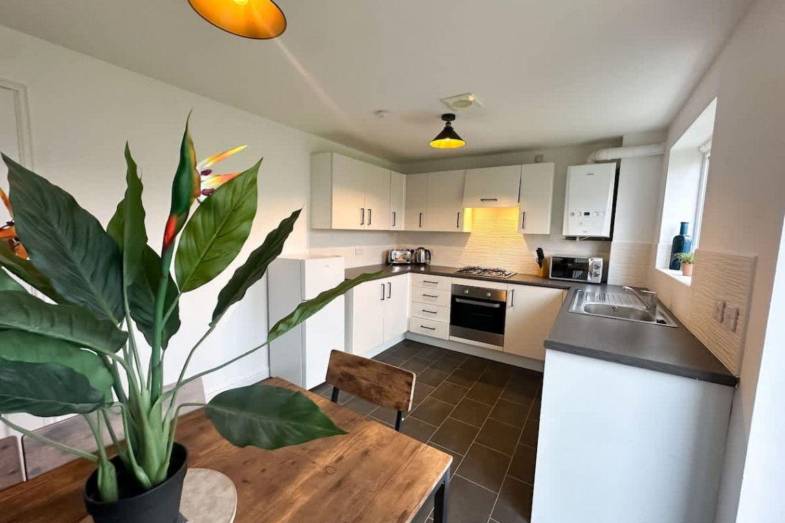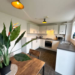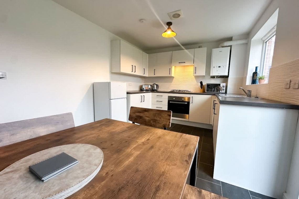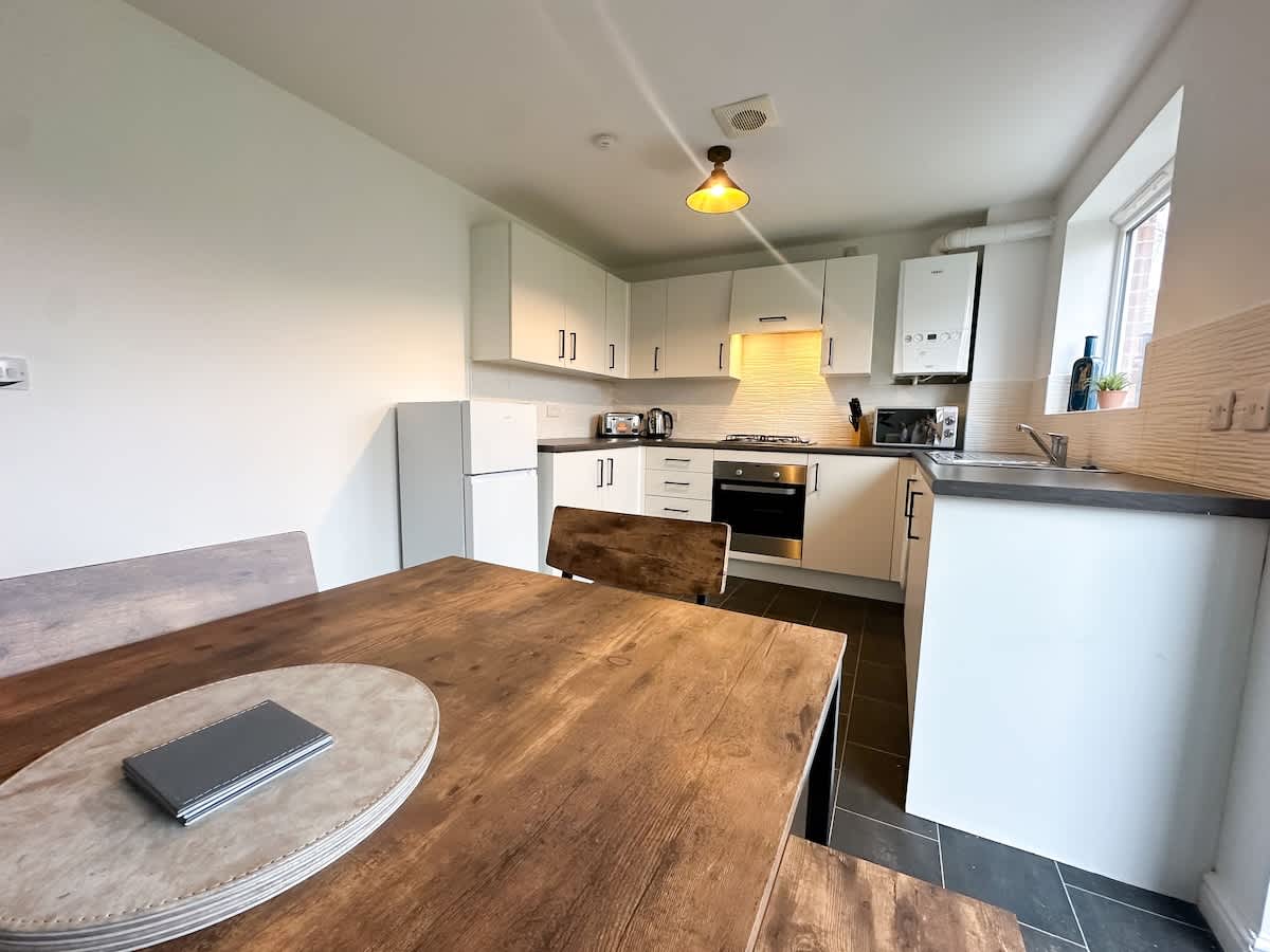 Beck House has a modern fully equipped kitchen with everything you need including integrated appliances for your self-catered stay. Enjoy your home-cooked meals at the dining area which includes a wooden dining table with space for 5.