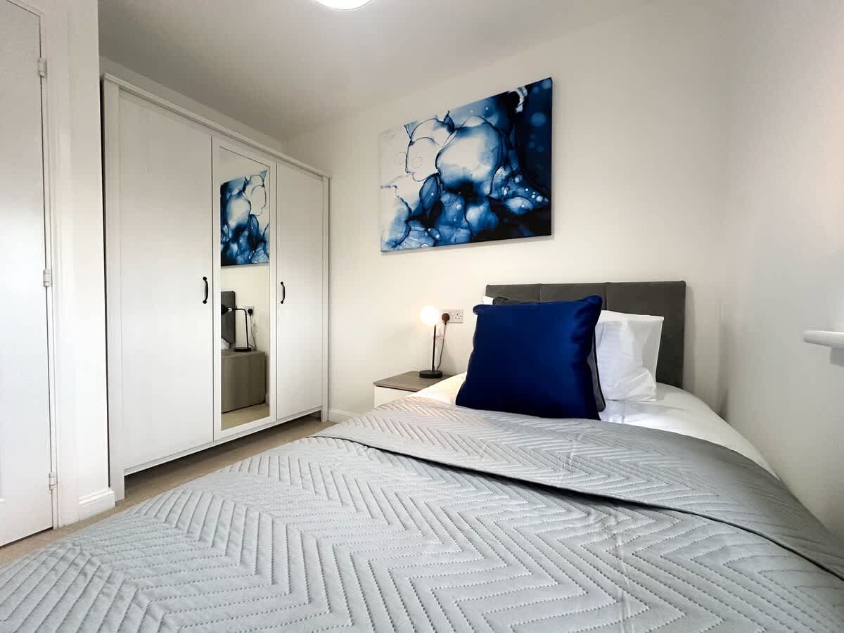 The second bedroom has a snug single bed offering a relaxing night’s sleep amongst a cosy colour scheme. Both bedrooms have wardrobes, as well as drawers so you’ll have plenty of storage space.