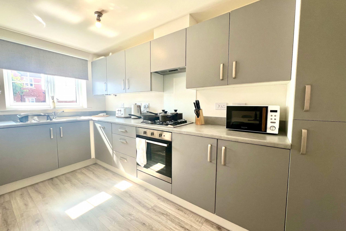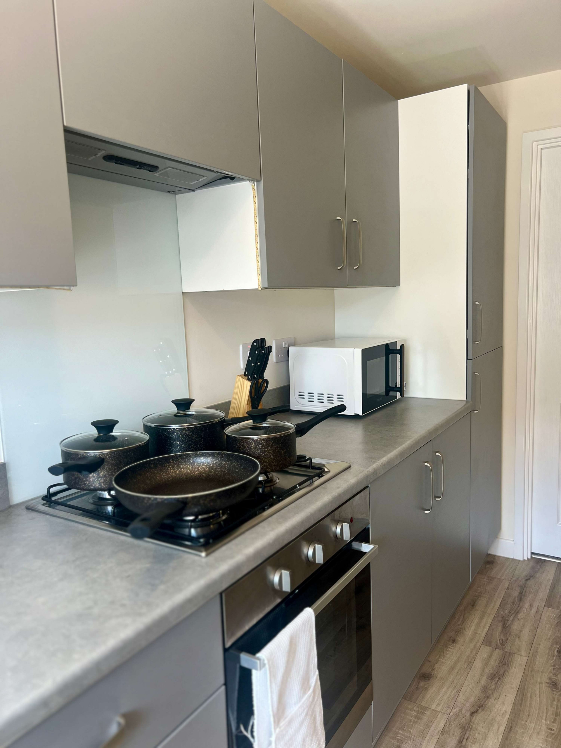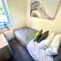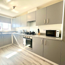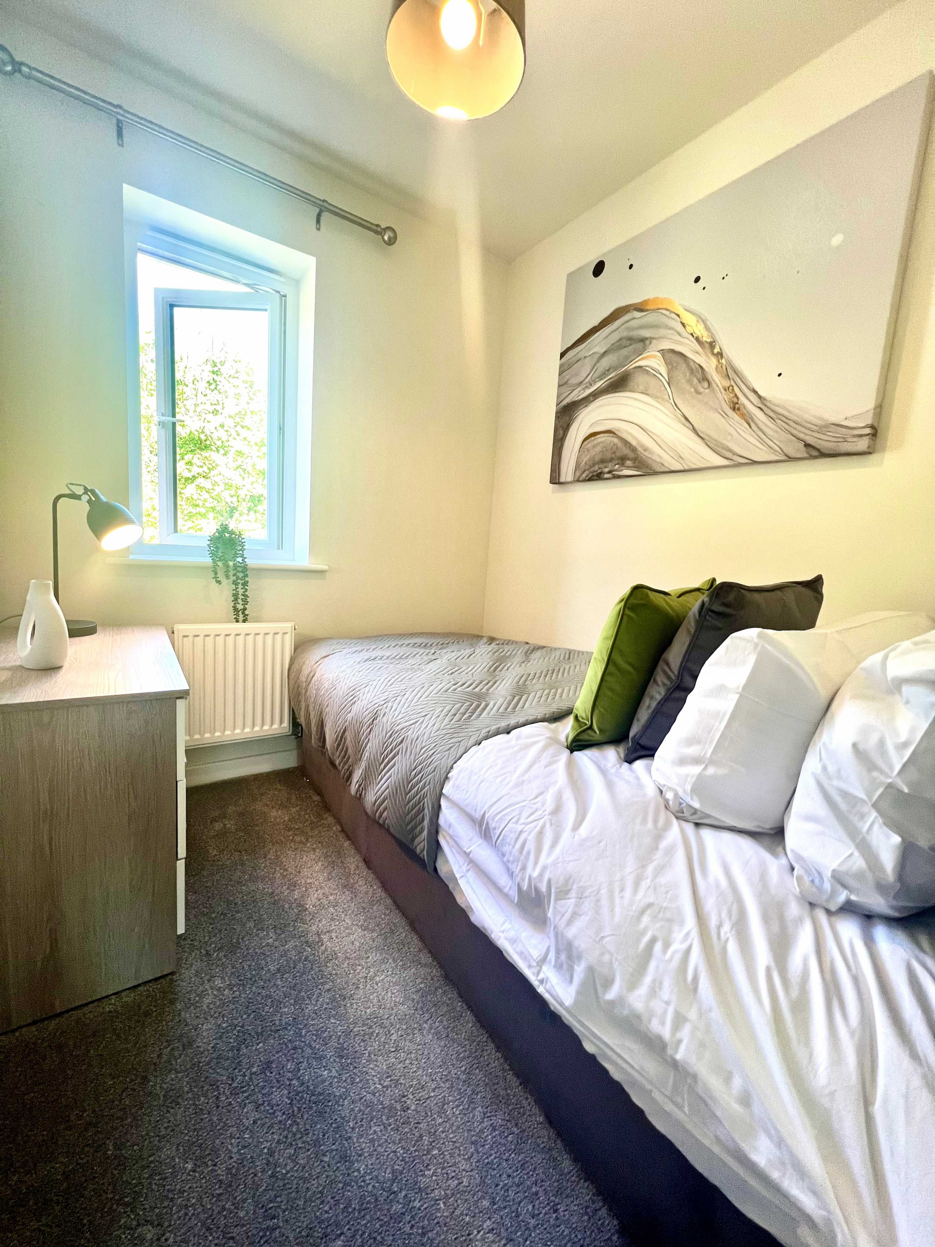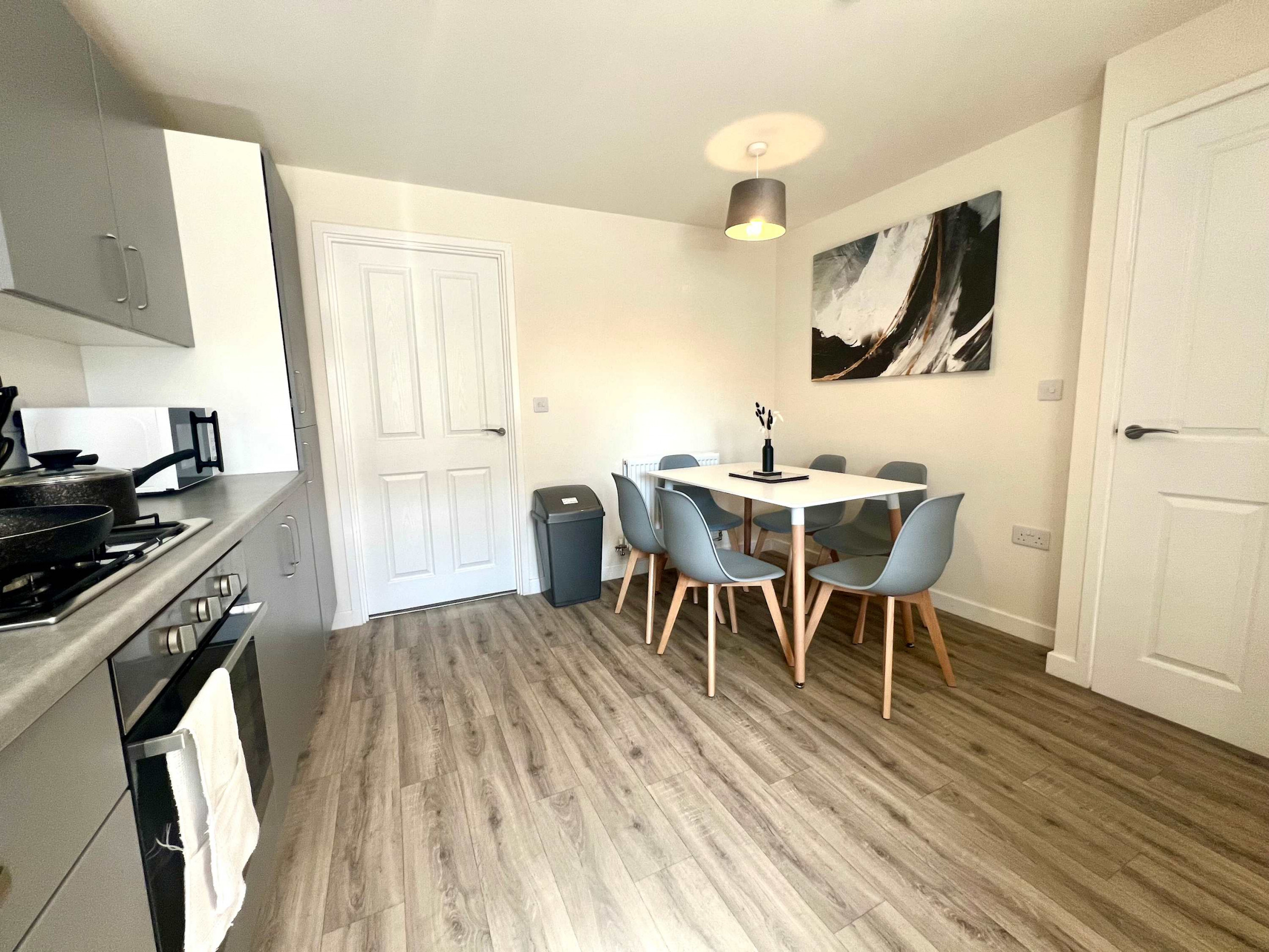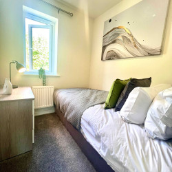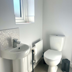 This modern 3-bedroom new build offers a bright, clean, and spacious environment—ideal for contractors or professionals seeking a comfortable base. The home sleeps up to 5 guests with one double bedroom, one twin room, and one single room, each furnished with quality bedding and storage.