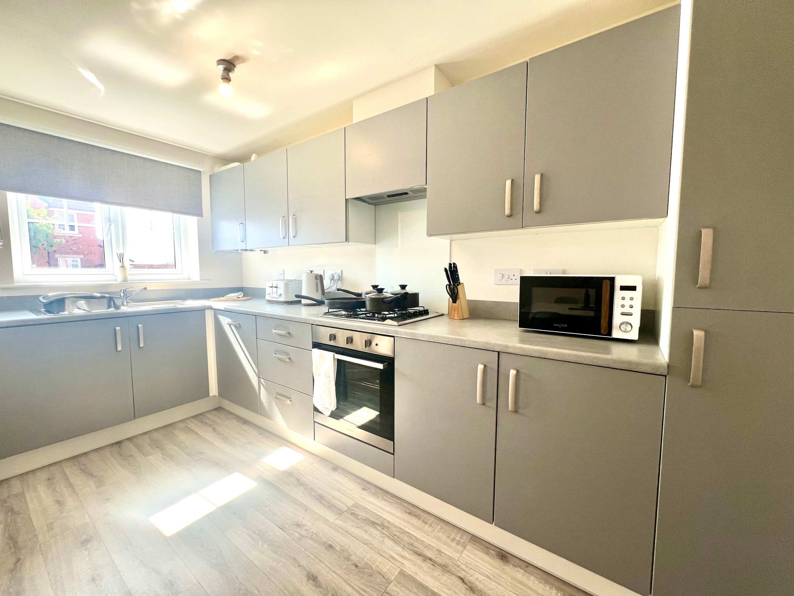 Welcome to this stylish new build in Coxhoe, perfect for contractors and working professionals. Located on a quiet estate, this spacious home features 3 bedrooms (1 double, 1 twin, 1 single), a fully equipped kitchen, comfortable living area, fast WiFi, and free parking. Ideal for longer stays, with local shops and transport links nearby. Book now for comfort, convenience, and peace of mind.