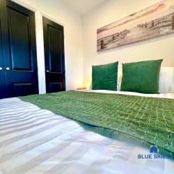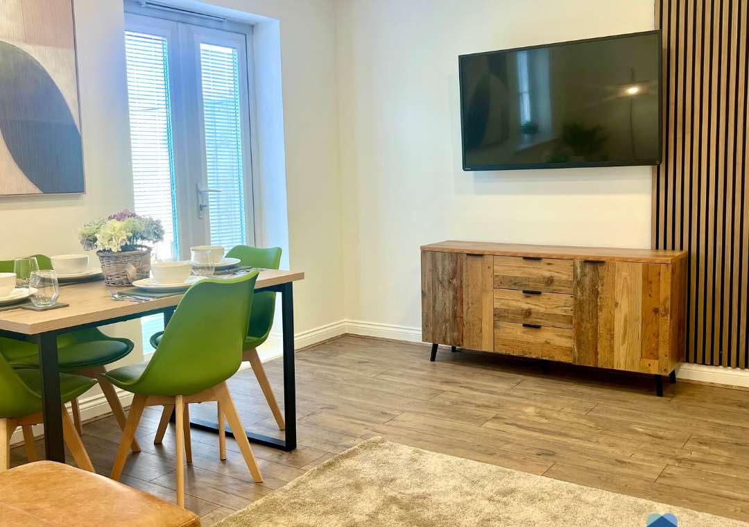 The heart of the home is the bright and spacious kitchen, fully equipped with modern appliances, including a dishwasher, ensuring your stay is as hassle-free as possible. There’s plenty of room to enjoy meals together at the dining table, whether you’re grabbing a quick breakfast or sitting down to a relaxed evening meal.