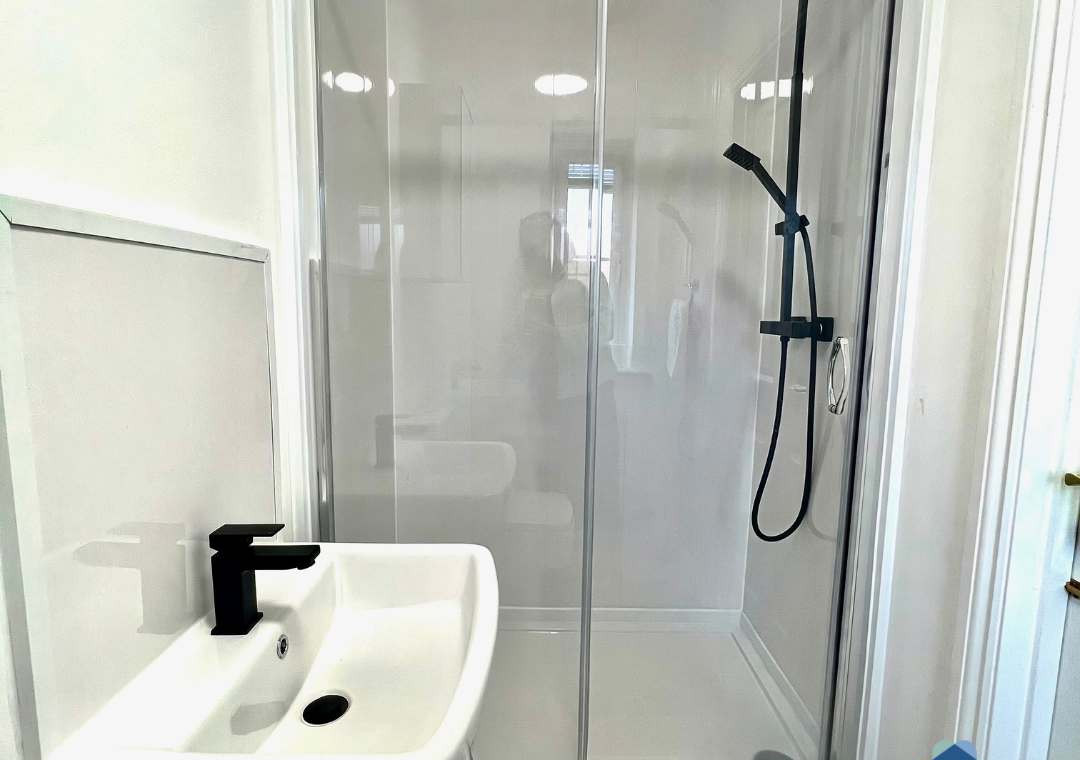 The home features two double bedrooms and one single bedroom, comfortably accommodating up to five guests. The master bedroom boasts its own en suite bathroom, creating a private retreat, while a convenient downstairs W.C. adds extra practicality for families or groups.