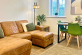 After a day of work or exploring the area, unwind in the comfortable living space, designed with a welcoming feel. Outside, you’ll also find a private garden, ideal for enjoying a quiet moment with your morning coffee.