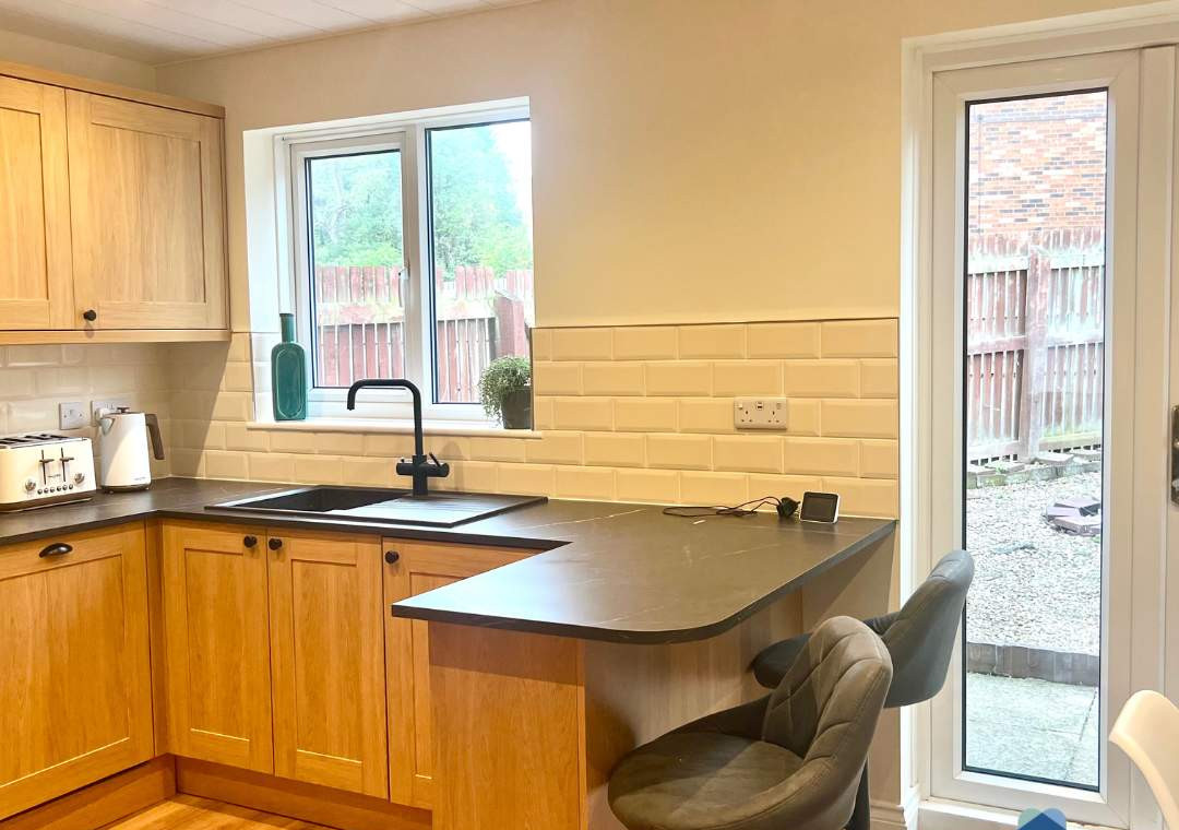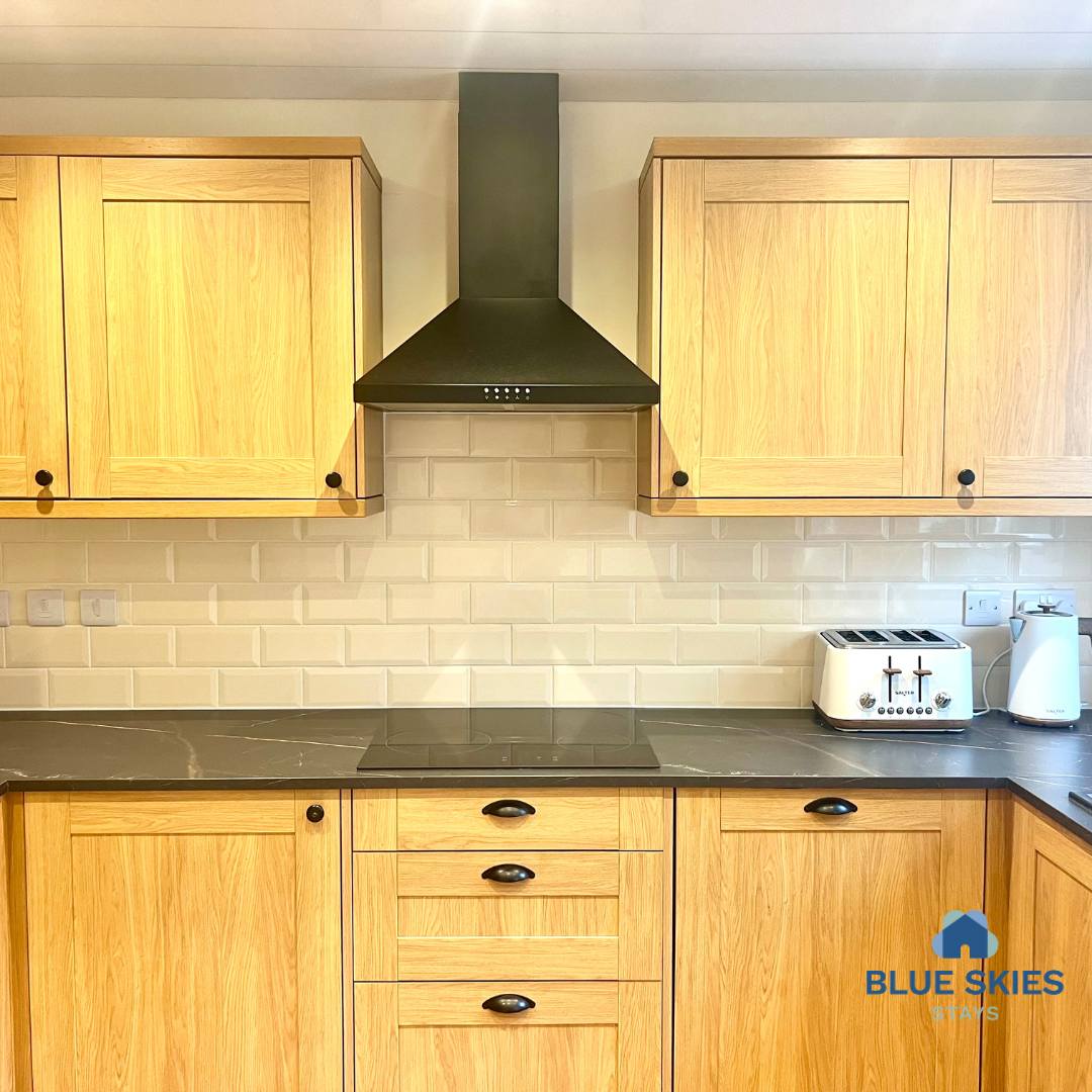 Step into a bright and welcoming open-plan kitchen and dining area, the perfect space to cook, dine, and spend time together. The modern kitchen is fully equipped with all the essentials — including an oven, hob, microwave, fridge-freezer, toaster, kettle, boiling tap and plenty of cookware
