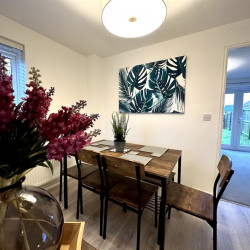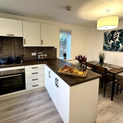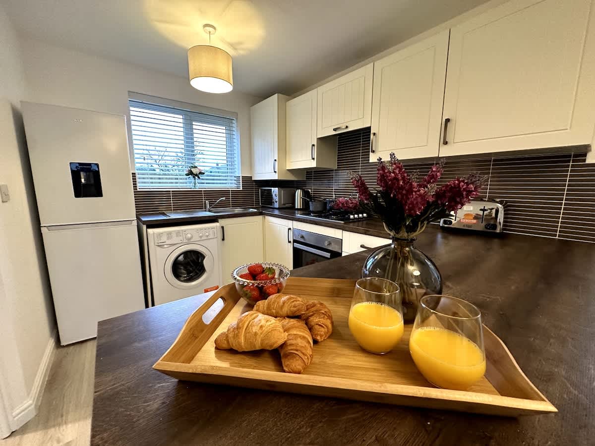Middlebeck House has a modern fully equipped kitchen with everything you need including integrated appliances for your self-catered stay. Enjoy your home-cooked meals at the dining area which includes a wooden dining table with space 6.