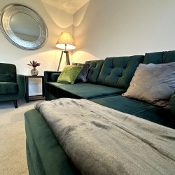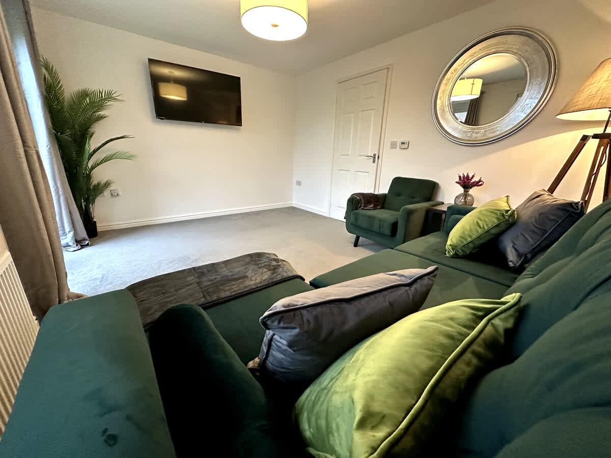 The cosy living area features a comfy L-shaped sofa, accent chair and a 50-inch flat-screen smart TV to enjoy at your leisure. You can log in to your preferred streaming services to watch your favourite shows. A real social hub, this space is great for relaxing with your party and unwinding after a day in the North East.