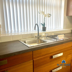 The kitchen is modern, spacious, and fully stocked with everything you need to cook and dine in comfort. You’ll find ample cupboard space, quality appliances including oven, hob, microwave, fridge-freezer, and all essential cookware, utensils, and crockery provided.