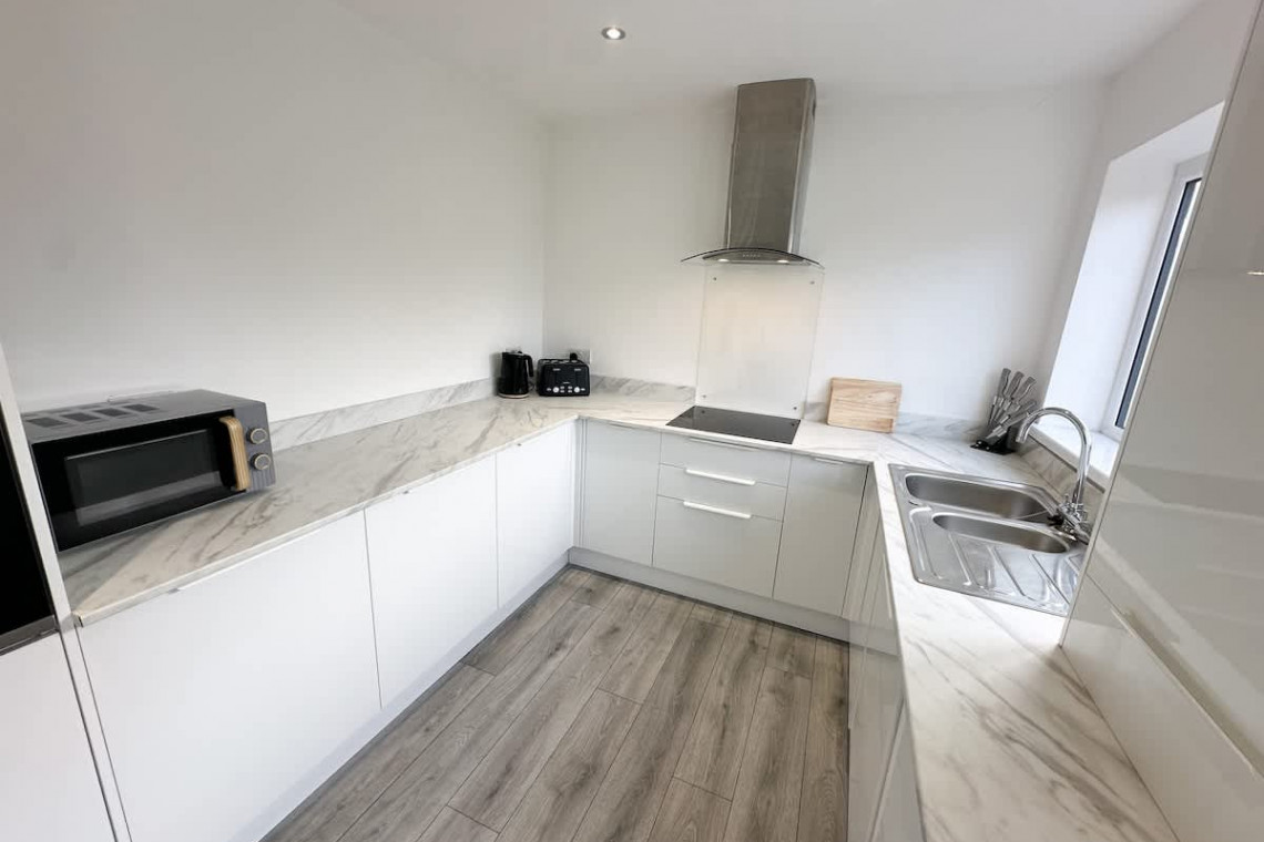 When booking No.25, you’ll have access to the entire property which includes a modern kitchen diner, a spacious living room, three cosy bedrooms, and a family bathroom.