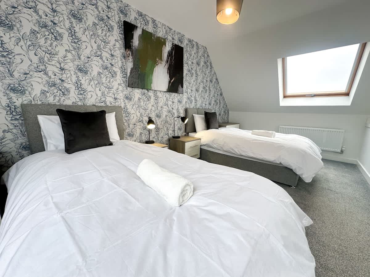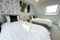 The first bedroom has a double bed & the second has a single. Up the second staircase is the third bedroom which is home to twin single beds. All bedrooms have storage for your belongings.