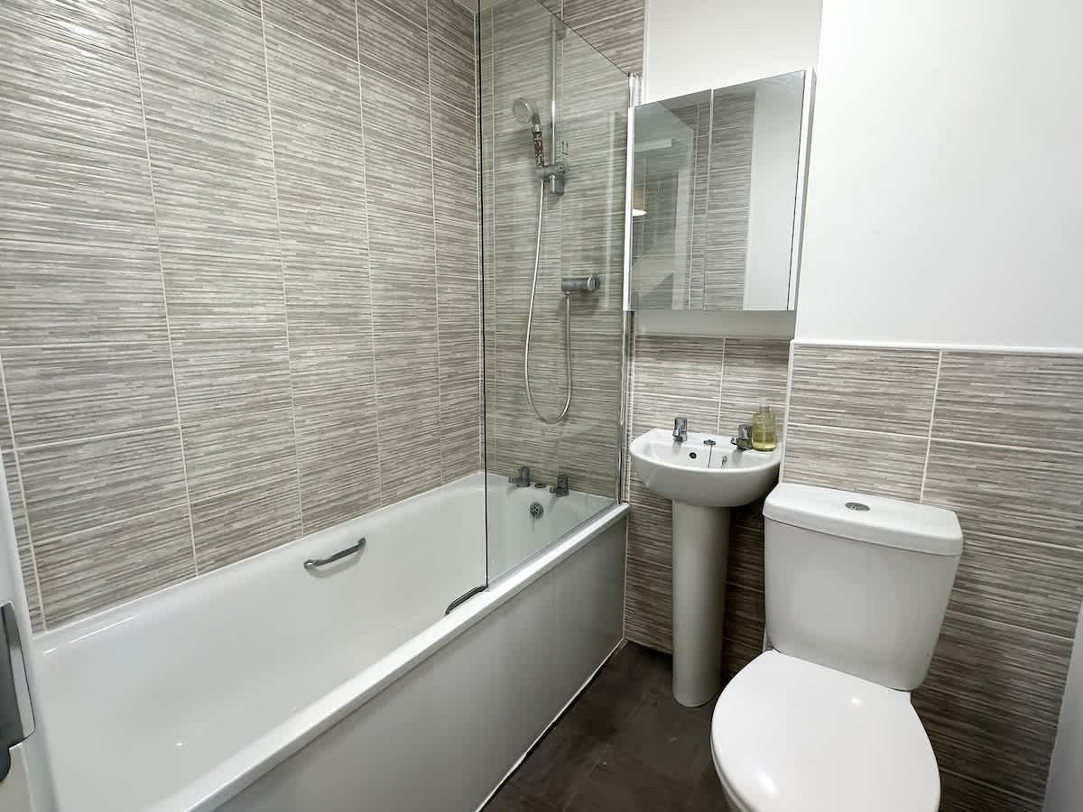 Up the first set of stairs is home to 2 of the bedrooms and the family bathroom. The bathroom has a bath with an overhead shower basin & WC.