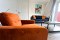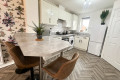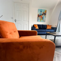 The open-plan kitchen living area is contemporary and comfortable. The kitchen has everything you should need for your self-catered stay. The living area shares the space and has a comfortable sofa & accent chair to kick back and relax on. There is a 50-inch smart TV so you can log in to your favourite streaming services and keep up with your favourite programmes for entertainment.