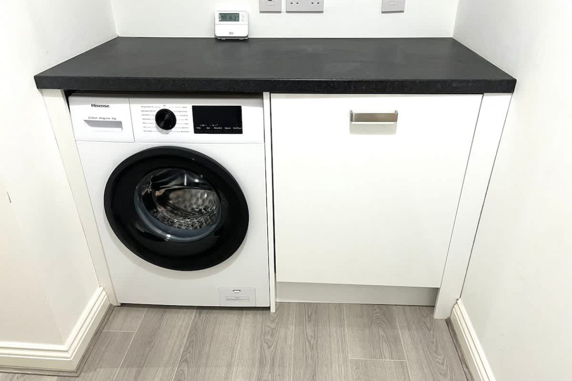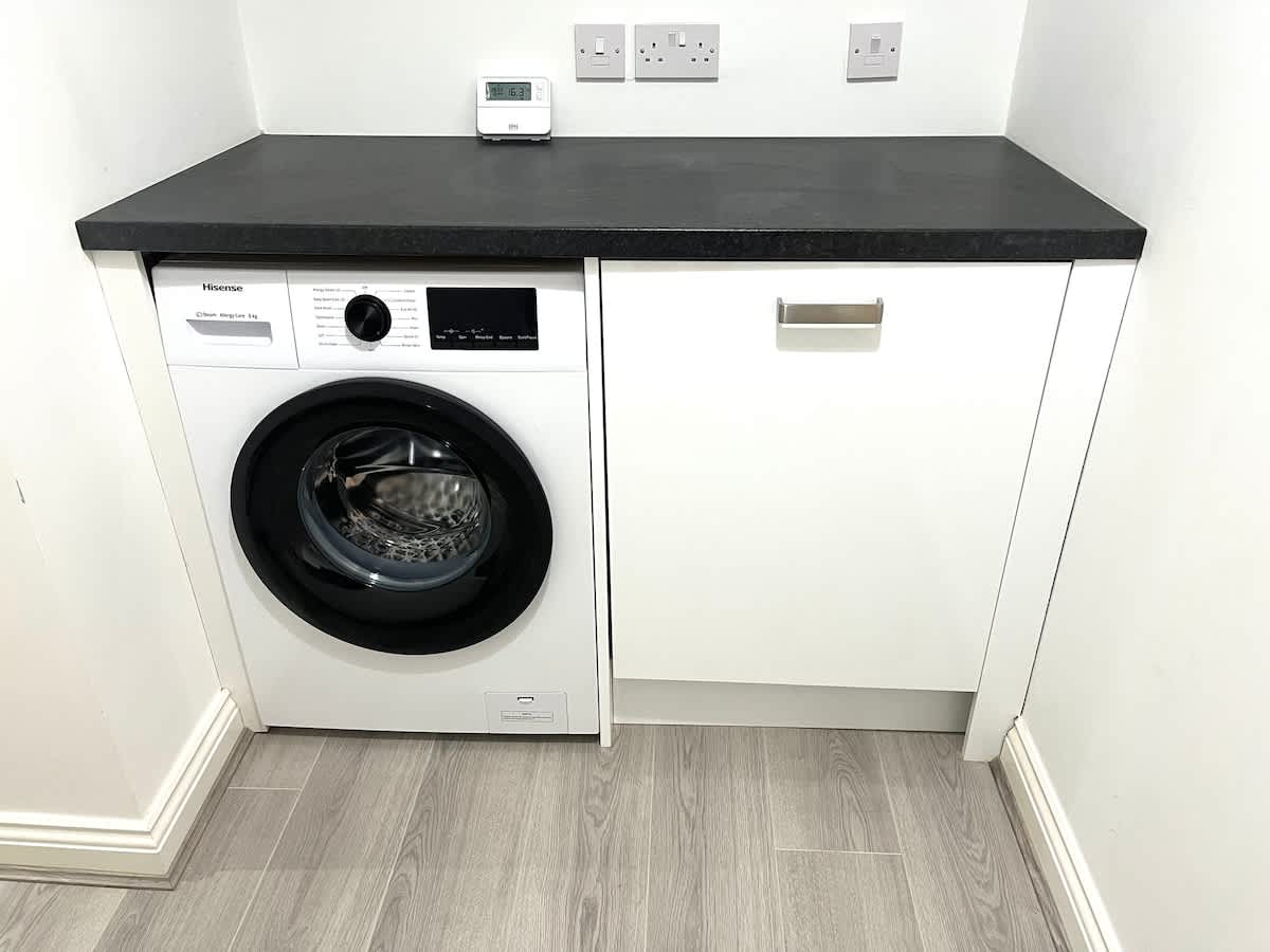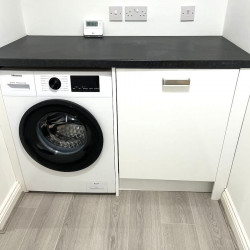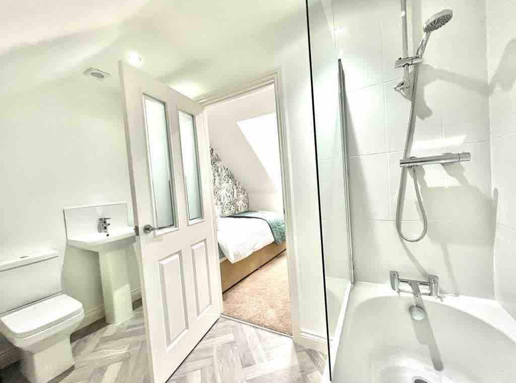 Greeted by the open plan kitchen & living area at the top of the stairs you will see the kitchen is fully equipped with integrated fridge-freezer, oven, hob, extractor, kettle, toaster and microwave as well as everything else you would need to cook a delicious meal. There is also a useful utility area with washing machine and dishwasher. There is also ironing facilities, a vacuum cleaner & clothes horse. The living area is a real social hub with a 50 inch flat screen smart TV, this space is great for relaxing with your party after a busy day. There is free fibre broadband throughout.