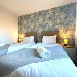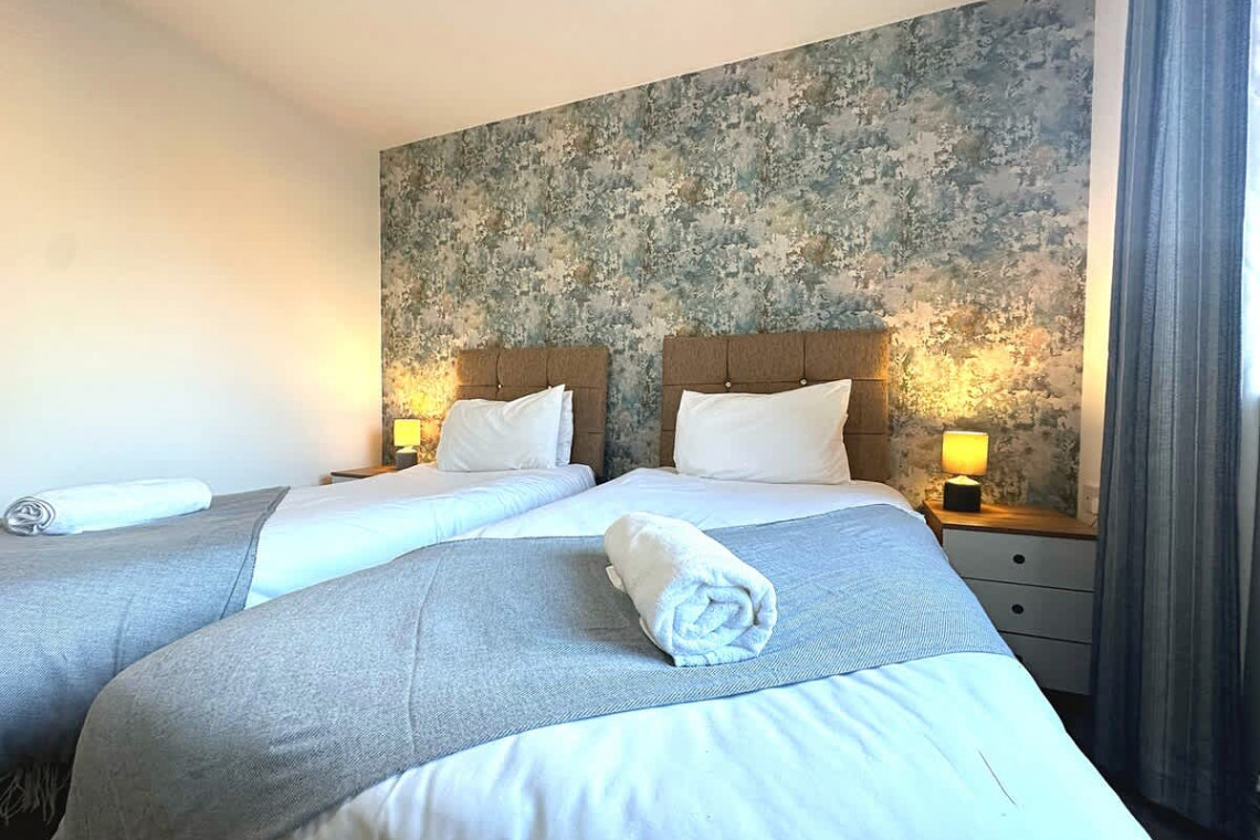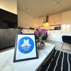 This apartment offers plenty of space for 4. Upon walking through the door you enter the large open-plan living, kitchen and dining area. The living space is equipped with a sofa & accent chairs to kick back on, switch off from your day and watch your favourite shows on the 50-inch smart TV where you can log in to your favourite streaming apps.