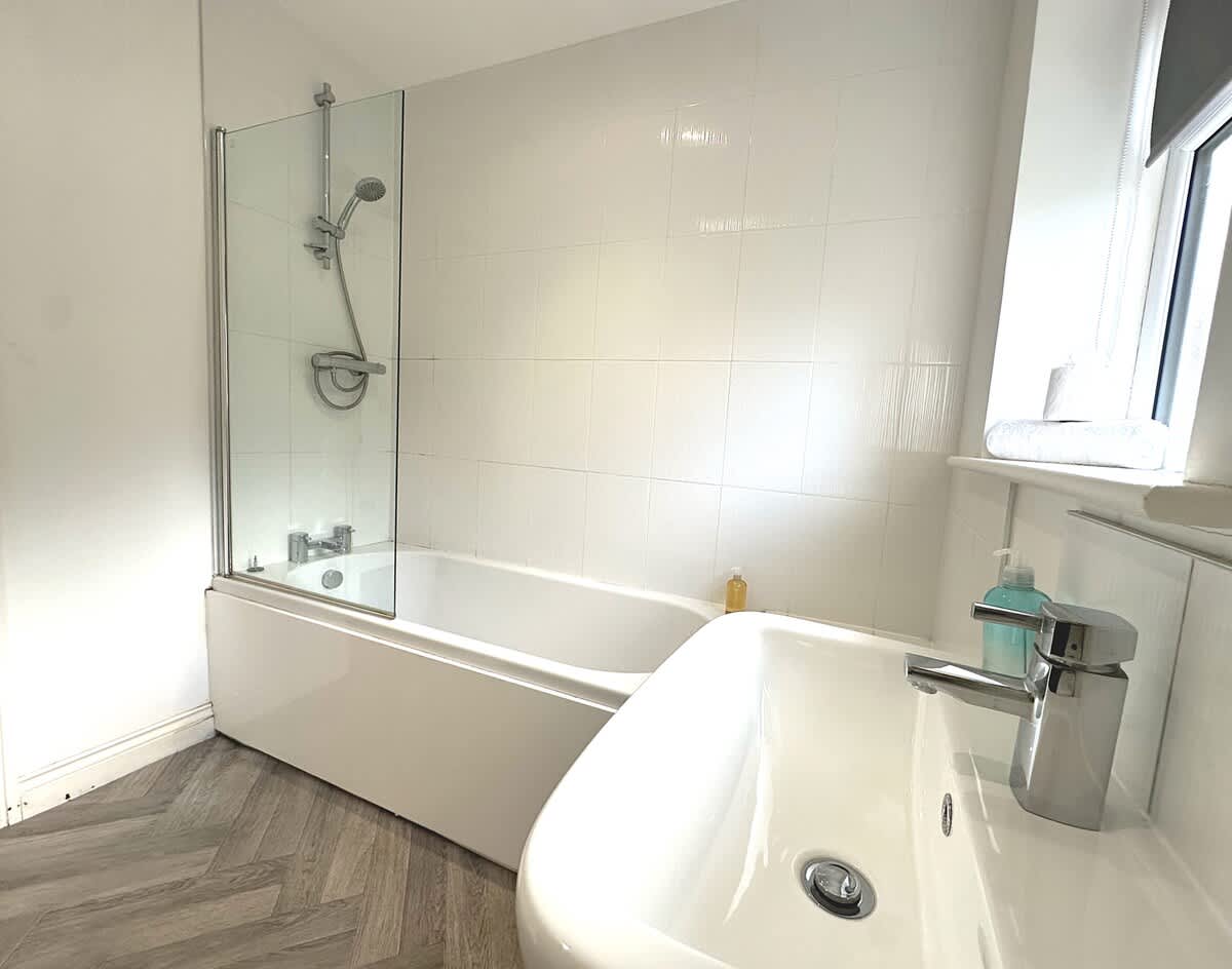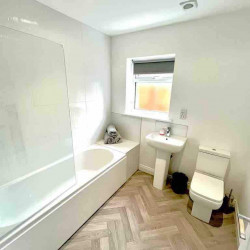 The apartment also has a modern family bathroom with a bath and overhead shower, basin & WC.