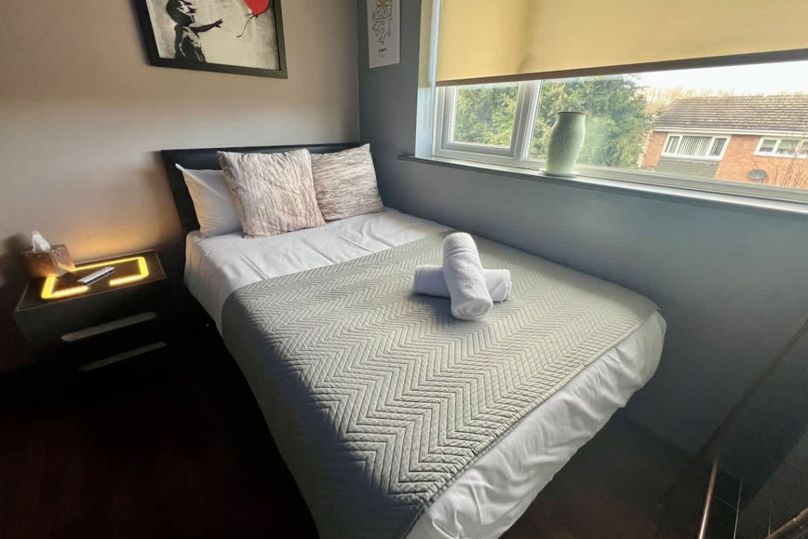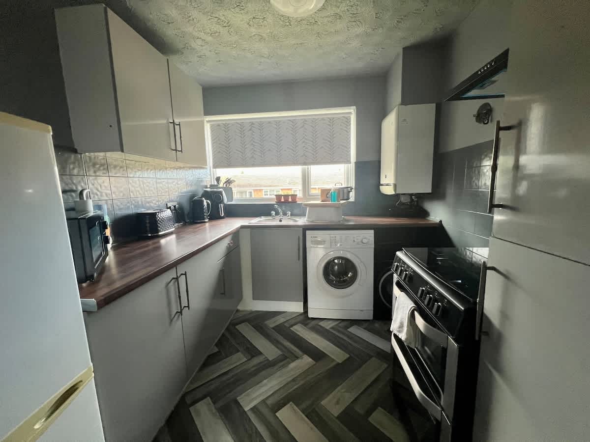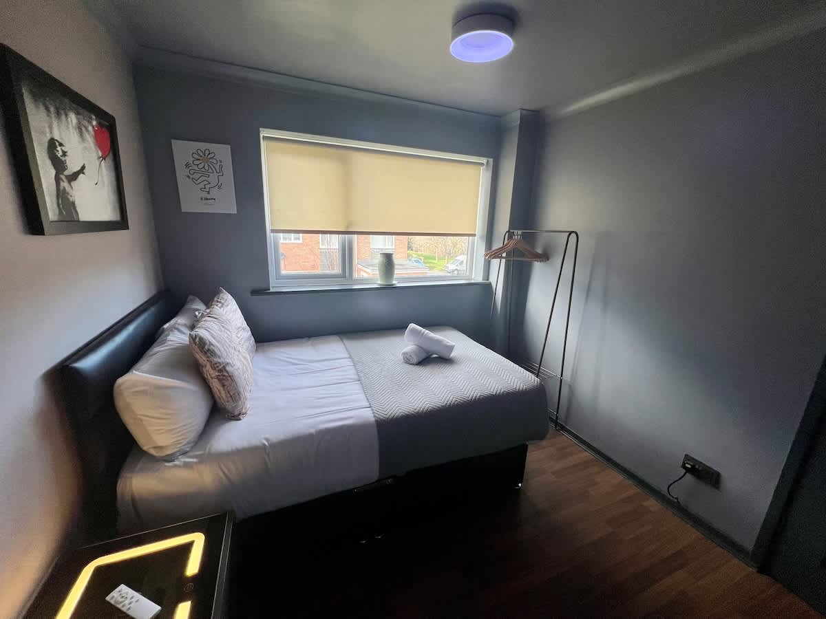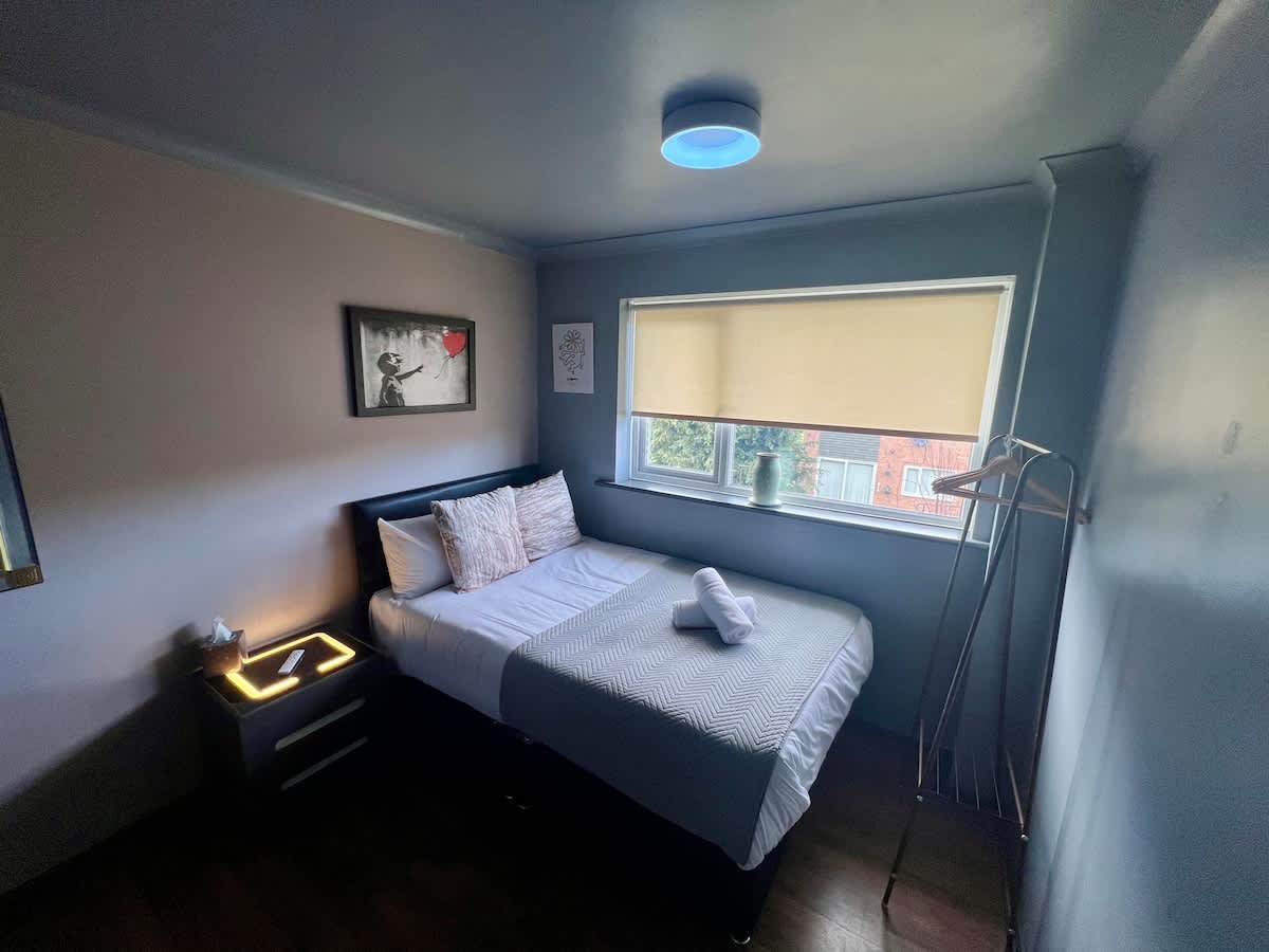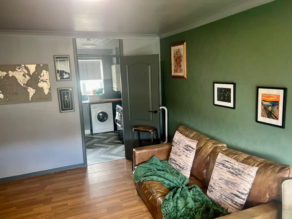 Welcome to your home from home! This modern, fully-equipped apartment offers a cozy living space, including kitchen, and 2 comfy bedrooms. Perfectly located near, shops and dining options, you’ll enjoy convenience and relaxation. Fast WiFi and free parking included. Your perfect getaway awaits!