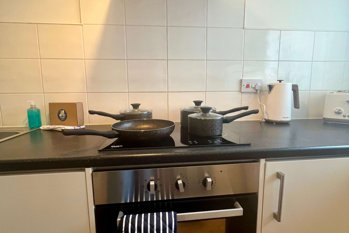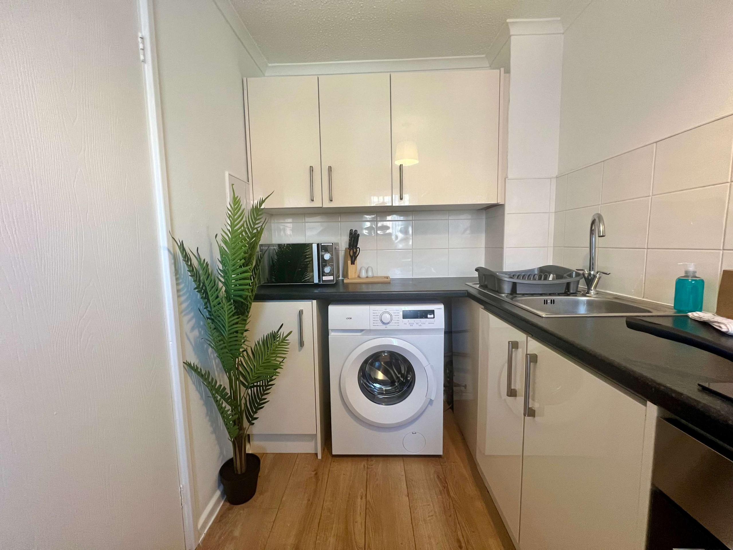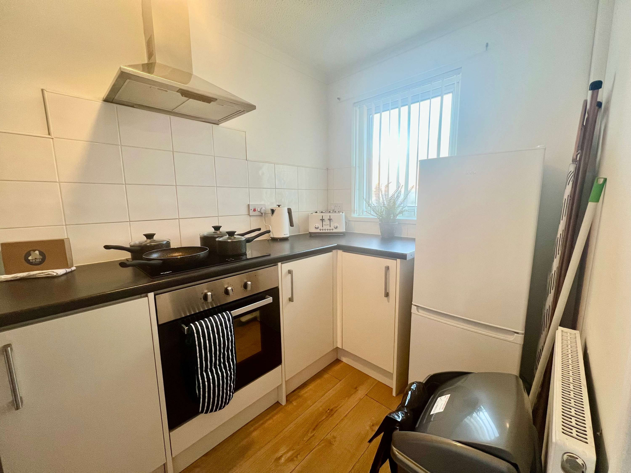 Guests can enjoy the entire place. The open kitchen dining area is contemporary and fully equipped as there is an oven, hob, microwave, toaster, kettle and fridge as well as a washing machine, ideal for self-catering stays.