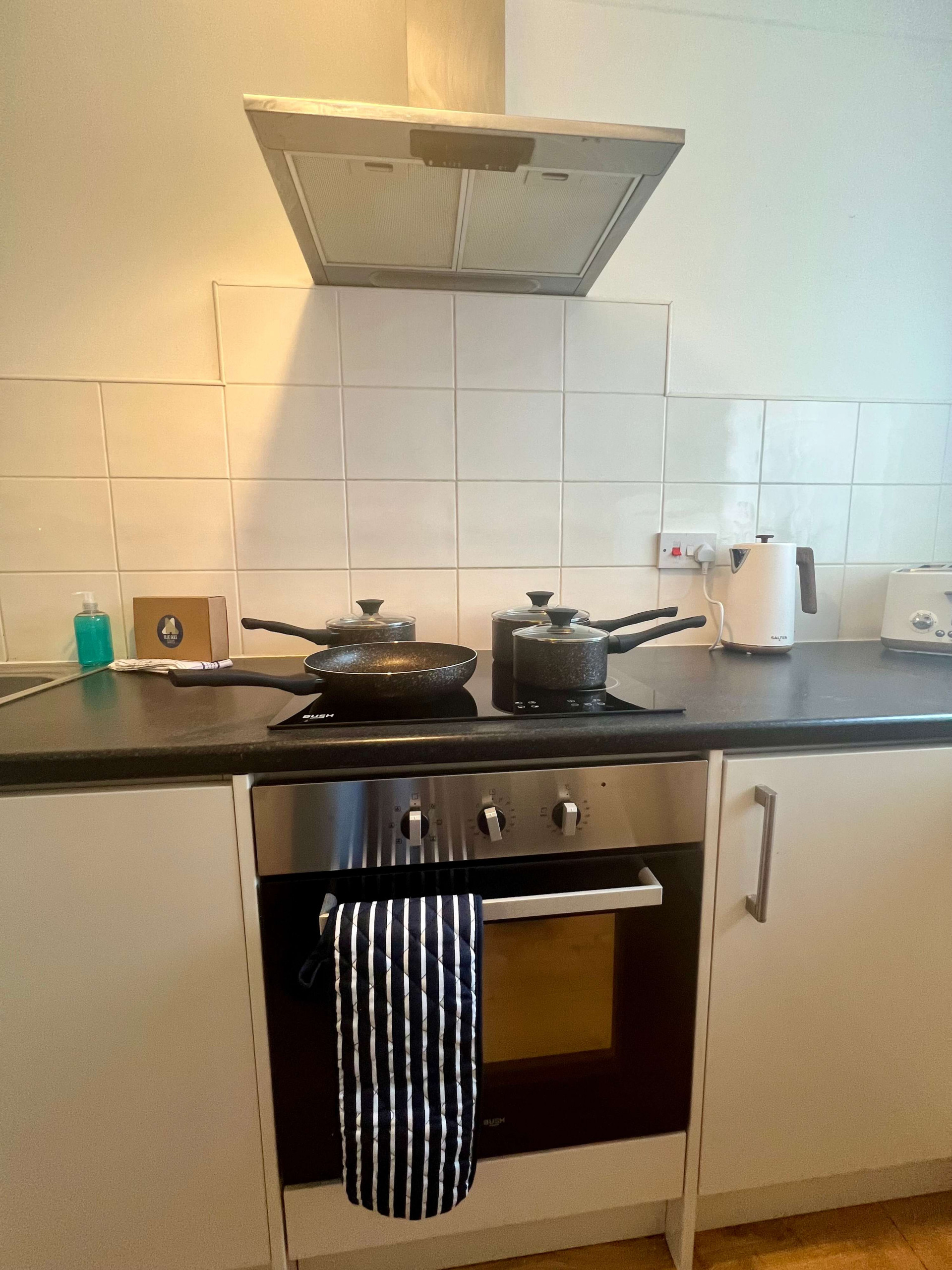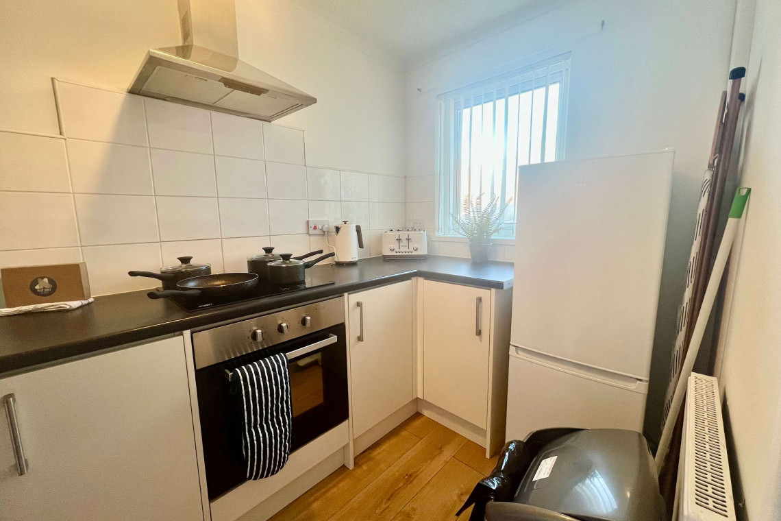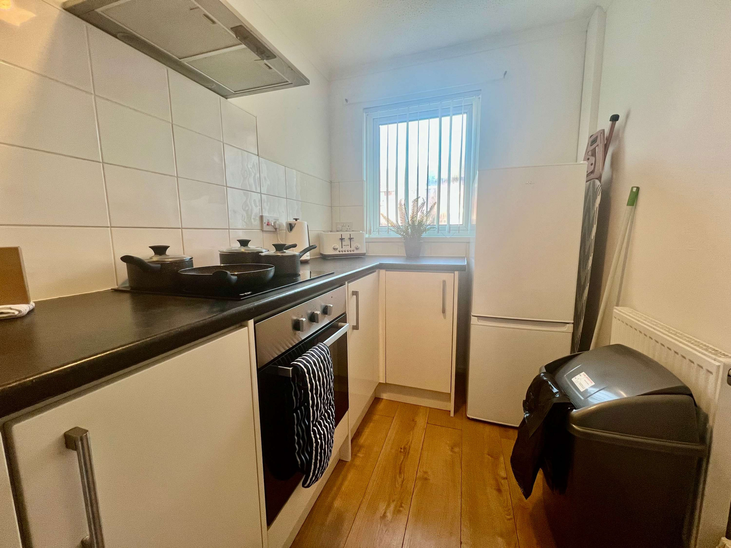 Guests can enjoy the entire place. The open kitchen dining area is contemporary and fully equipped as there is an oven, hob, microwave, toaster, kettle and fridge as well as a washing machine, ideal for self-catering stays.