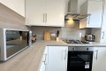 The bright living area features a cosy sofa & 2 accent chairs and a smart TV, the perfect place to kick back and unwind after a busy day and watch your current series on your favourite streaming apps.