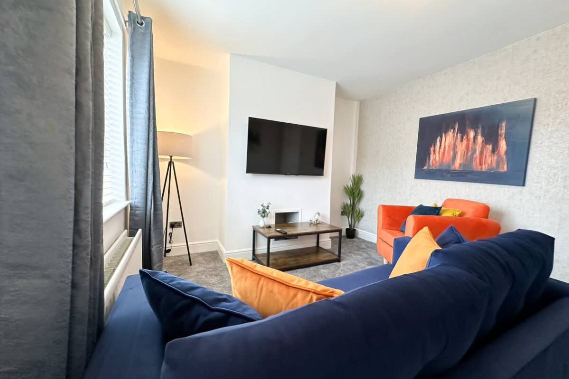 The cosy living room is the ideal place to kick back and relax after a busy day out in the area. The area is home to a comfortable sofa and a 50-inch smart TV. You can log in to your streaming accounts and watch your favourite shows.