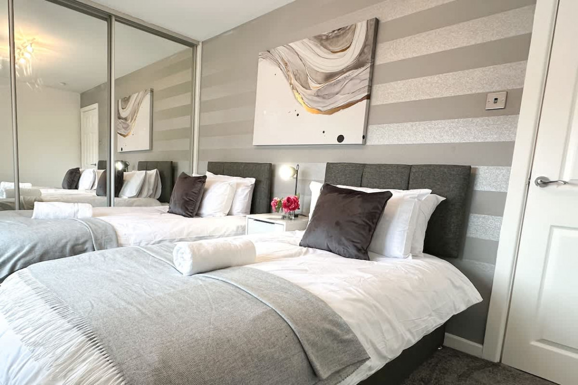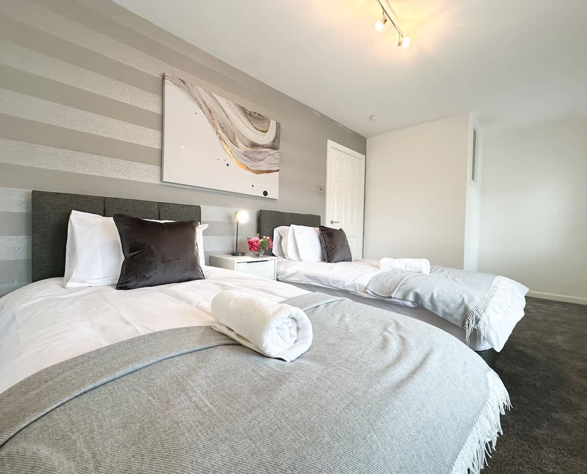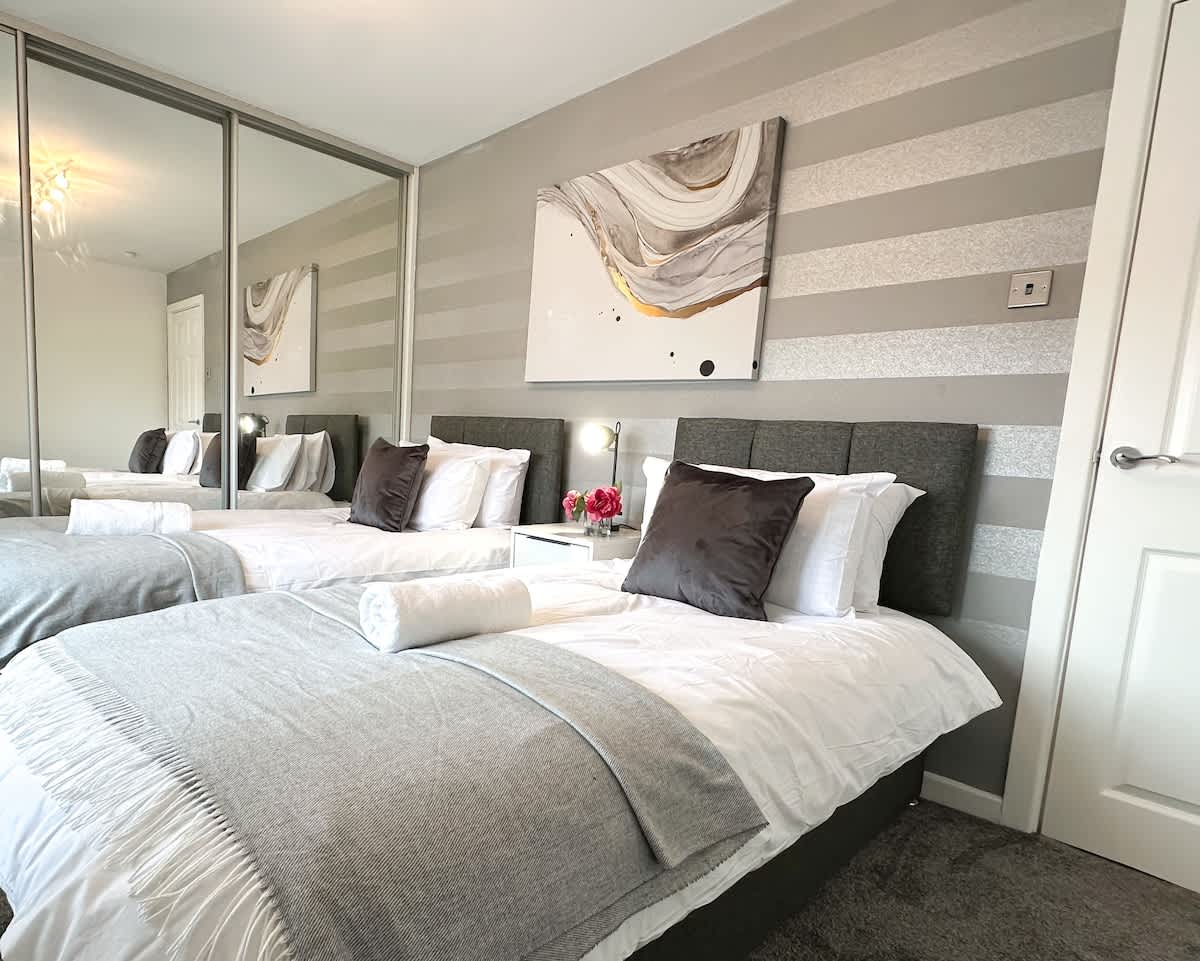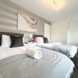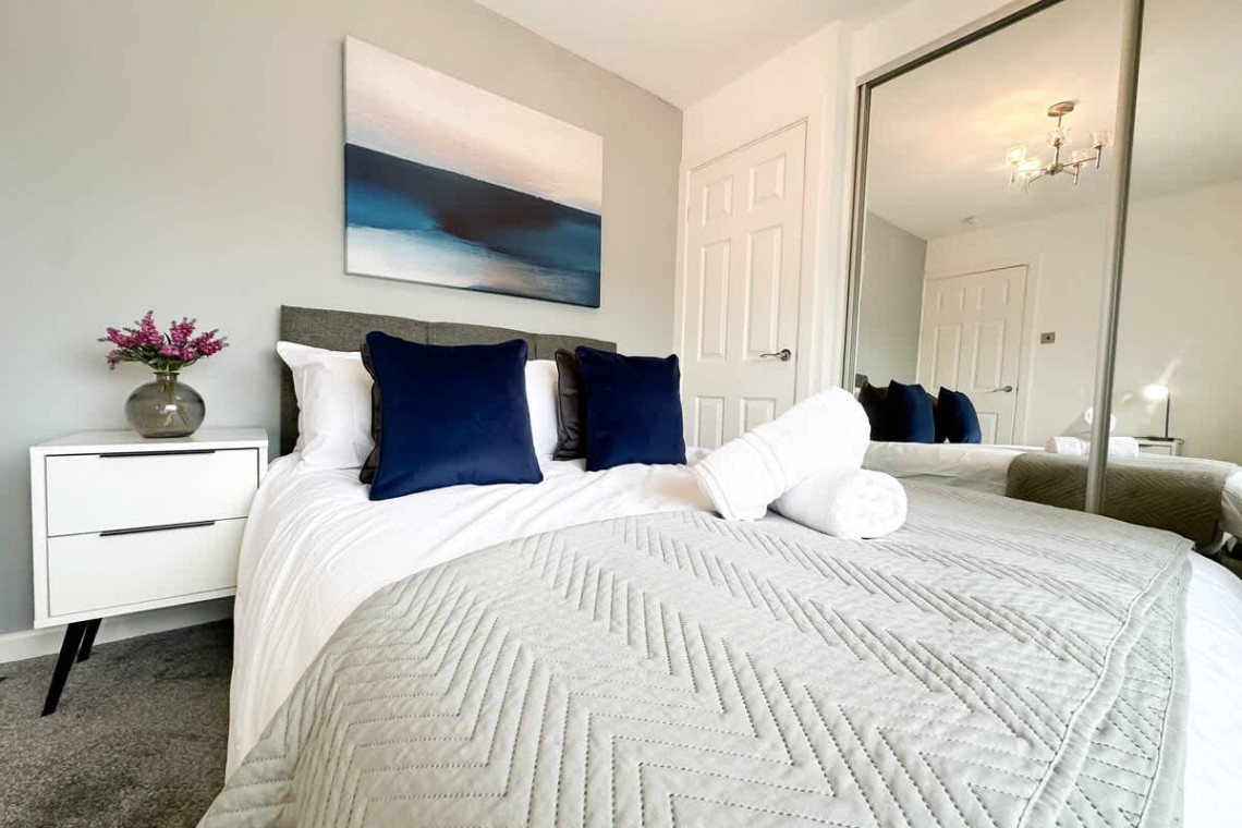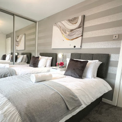 The first bedroom has a comfy double bed & the second bedroom has twin single beds. Both rooms have ample storage space as they have built-in wardrobes for your belongings. All beds have plush cotton bedding
