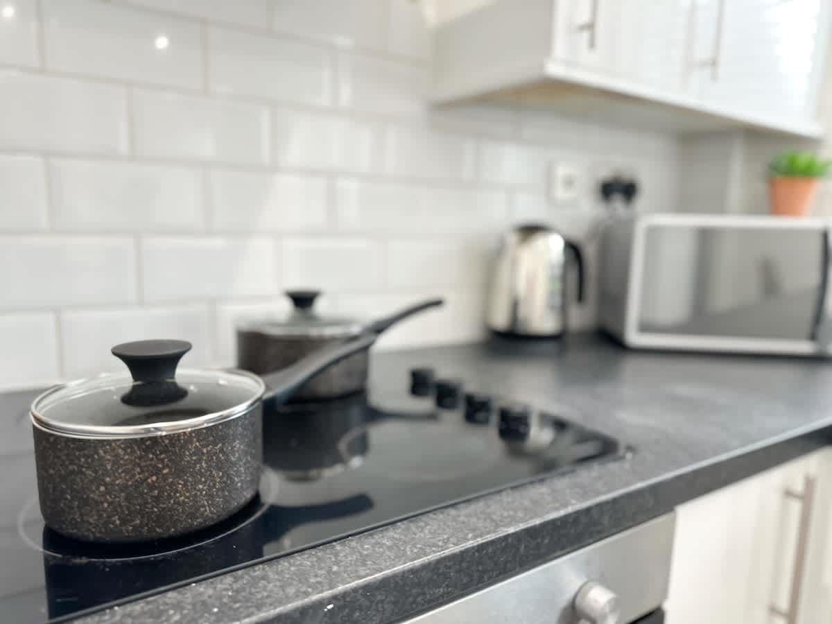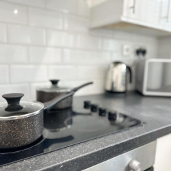 Modern in style, the kitchen has everything you could need to make the most of your self-catering stay including cookware and appliances such as an oven and hob, microwave, toaster, fridge-freezer and kettle. Everything you need for a self-catered stay.