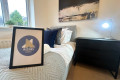 Two of the bedrooms are home to comfy singles. The third is home to a double. All bedrooms have storage.