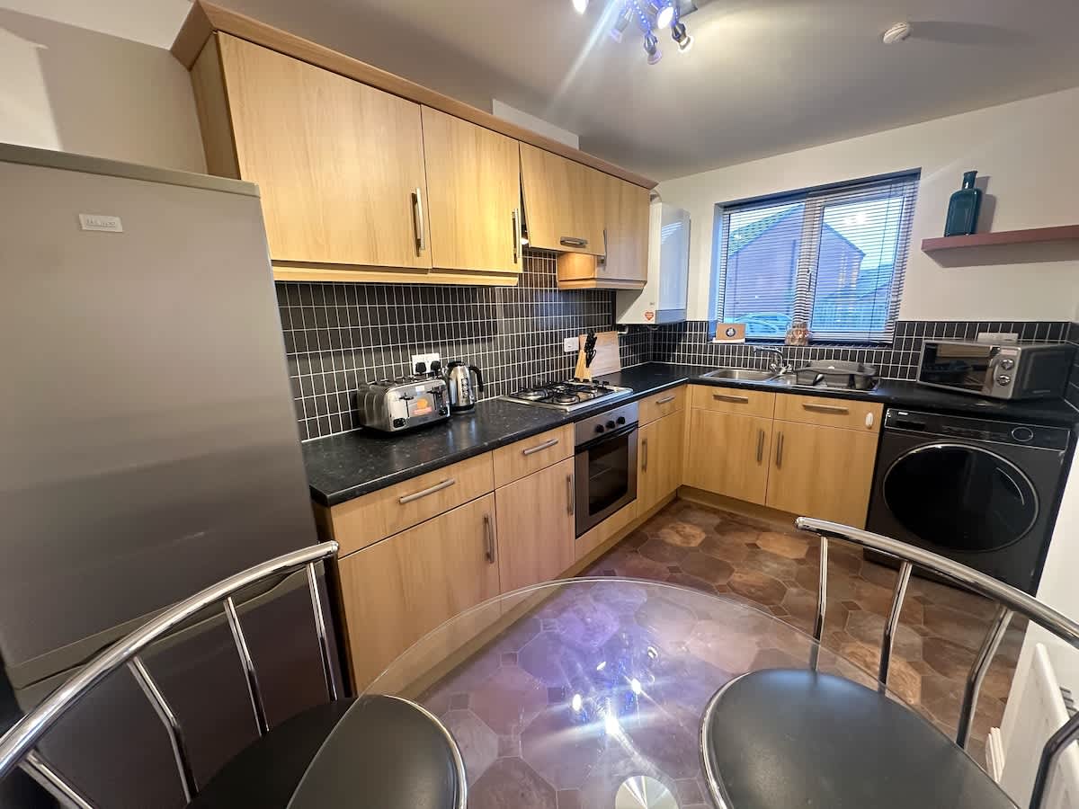 On the ground floor, there is a fully equipped kitchen with all the basics you would need for your self-catered stay and cooking homemade meals. There is a smaller table in this space for you to enjoy your morning coffee.