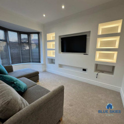 The spacious lounge is the heart of the home, featuring a comfortable sofa, smart TV, and high-speed WiFi — perfect for relaxing, streaming your favourite shows, or catching up on work.